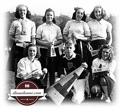 1941 Ilion Varsity Cheerleaders Standing Left to Right: Carol Baxter, Marge Day, Jane Betzinger, Betty Bleau Front Row: Marion Risedorf, Art Durkin, Bobby Jarvis