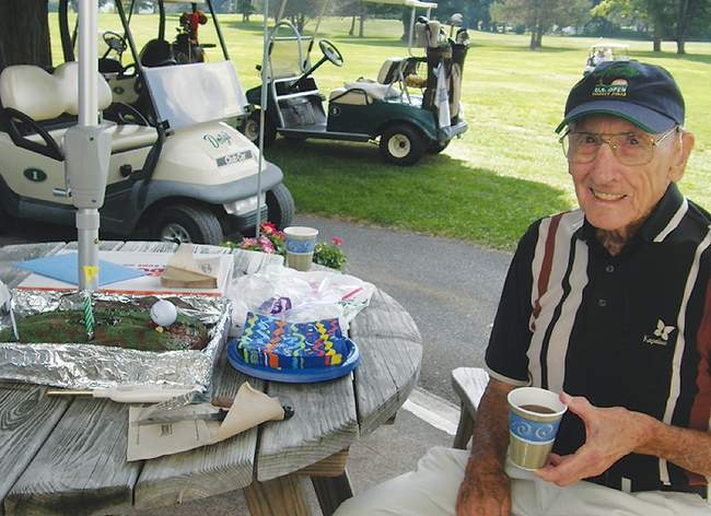 Carl Bleau, of Ilion, celebrated his 98th birthday Thursday the way he does almost every day during the summer — with his golfing buddies at Doty’s Public Golf Course.