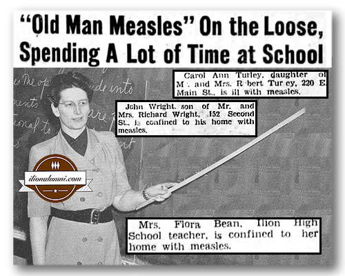 Frances (Sanders) Streeter, Class of 1950, wrote the headline article "Old Man Measles" on The Loose, Spending a Lot of Time at School for The Ilion Sentinel in 1949.